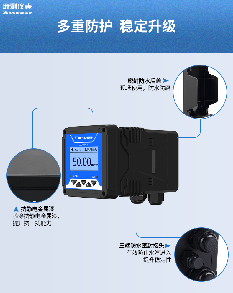 SIN-TDS210-C工業電導率儀表,廣泛應用于火電、化工化肥、冶金、環保、制藥、生 化、食品和自來水等行業。控制器主要對溶液中的電導率/總溶解固體/ 電阻率和溫度進行連續監測。